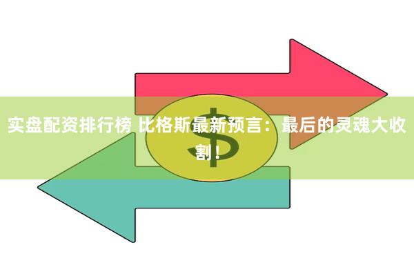 比格斯在节目中说,相当后的呼召,相当后的灵魂大收割,一场我们从未见过的灵魂大收割。